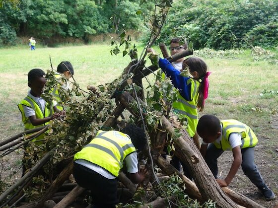 Photos, installation works, drawing and printmaking that maps the interaction and experience of children immersed in the landscape. The work has been created from a direct collaboration with school groups working with Laura in the Outdoor Learning Area in the grounds of Alexandra Park as part of Alexandra Palace’s Wild in the Park outdoor learning programme.